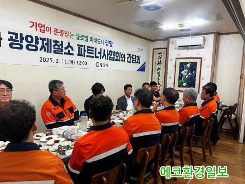 [¿¡ÄÚȯ°æÀϺ¸ Àü³²±¤¾ç=¹Ú±¤¿Á±âÀÚ] ±¤¾ç½Ã(½ÃÀå Á¤ÀÎÈ)´Â 9¿ù 11ÀÏ ±¤¾çÁ¦Ã¶¼Ò ÆÄÆ®³Ê»çÇùȸ¿Í °£´ãȸ¸¦ ¿°í, ±â¾÷ ÇöÀåÀÇ ¾Ö·Î»çÇ×À» ûÃëÇÏ¸ç »óÈ£ Çù·Â ¹æ¾ÈÀ» ³íÀÇÇß´Ù.