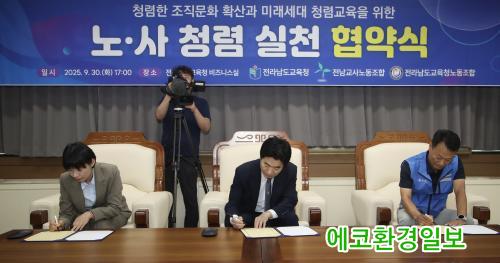 [¿¡ÄÚȯ°æÀϺ¸ Àü³²=À̽ŵ¿±âÀÚ] Àü¶ó³²µµ±³À°Ã»Àº 30ÀÏ Ã»»ç ºñÁî´Ï½º½Ç¿¡¼ Àü³²±³»ç³ëµ¿Á¶ÇÕ, Àü¶ó³²µµ±³À°Ã»³ëµ¿Á¶ÇÕ°ú ¡®Ã»·Å ½Çõ Çù¾à(MOU)¡¯À» ¸Î°í û·ÅÇÑ Á¶Á÷¹®È È®»ê°ú ¹Ì·¡¼¼´ë û·Å±³À° °È¸¦ ¾à¼ÓÇß´Ù.