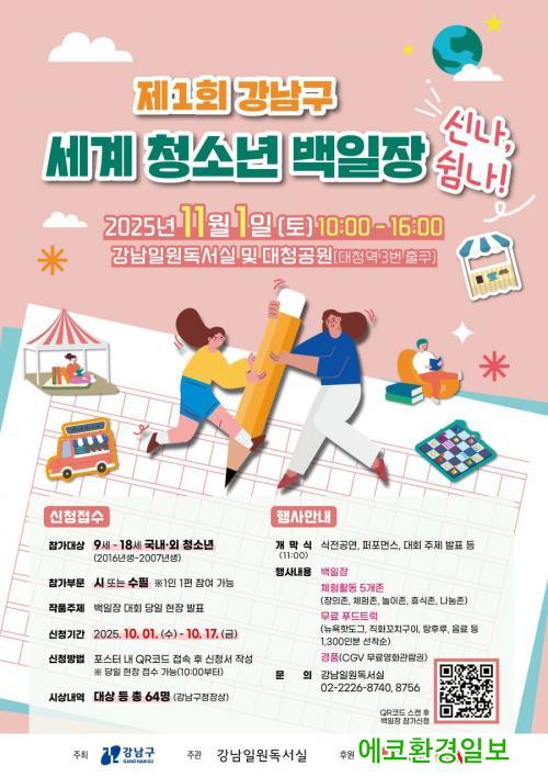 ¹éÀÏÀå¿¡´Â 9¼¼ºÎÅÍ 18¼¼±îÁö(2016³â»ý~2007³â»ý) ±¹³»‧¿Ü ±¹Àû û¼Ò³â ´©±¸³ª Âü¿©ÇÒ ¼ö ÀÖ´Ù. Çà»ç ´çÀÏ ÇöÀå¿¡¼ ±Û¾²±â ÁÖÁ¦°¡ Á¦½ÃµÇ¸ç, ½Ã ¶Ç´Â ¼öÇÊ Áß ÇÑ ÆíÀ» ÀÛ¼ºÇØ Á¦ÃâÇÏ¸é µÈ´Ù. Æ÷½ºÅÍÀÇ ±âÀçµÈ QRÄڵ带 ÅëÇØ 10¿ù 17ÀϱîÁö »çÀü ½ÅûÀ» ÇÒ ¼ö ÀÖÀ¸¸ç, Çà»ç ´çÀÏ ÇöÀå Á¢¼öµµ °¡´ÉÇÏ´Ù. Âü°¡ÀÚ´Â ½ÅºÐ È®ÀÎÀ» À§ÇØ ÇлýÁõÀ̳ª ¿©±ÇÀ» ÁöÂüÇØ¾ß ÇÑ´Ù.