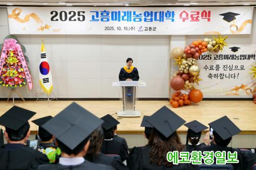 [¿¡ÄÚȯ°æÀϺ¸ °íÈï=¹Ú±¤¿Á±âÀÚ]°íÈﱺ(±º¼ö °ø¿µ¹Î)Àº 15ÀÏ ³ó¾÷±â¼ú¼¾ÅÍ ´ë±³À°Àå¿¡¼ ¡®2025³âµµ °íÈï¹Ì·¡³ó¾÷´ëÇÐ ¼ö·á½Ä¡¯À» °³ÃÖÇϰí, Áö¿ª ³ó¾÷ÀÇ ¹Ì·¡¸¦ ¼±µµÇÒ Àü¹®³ó¾÷ÀÎ 36¸íÀ» ¹èÃâÇß´Ù.