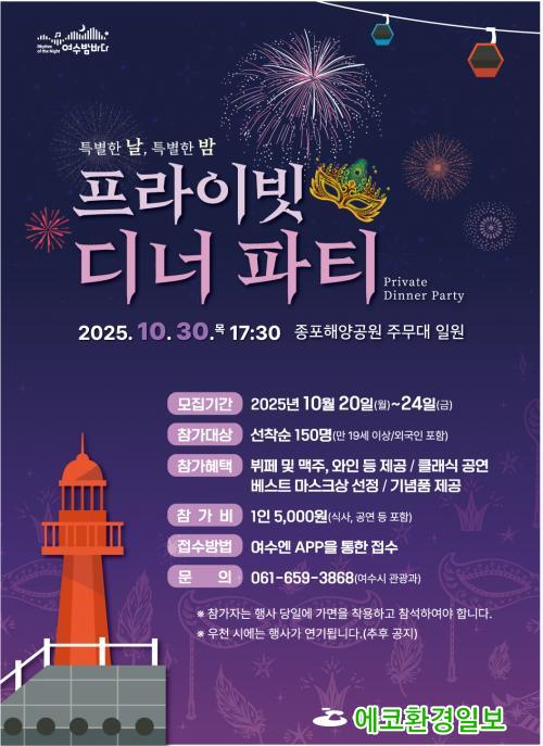 ¡®ÇÁ¶óÀ̺ø µð³Ê ÆÄƼ¡¯´Â ¿©¼ö ¹ã¹Ù´Ù¸¦ ¹è°æÀ¸·Î °¡¸éÀ» ¾²°í ½Ä»ç¿Í °ø¿¬À» ÇÔ²² Áñ±â´Â Á¾ÇÕÇü ¾ß°£°ü±¤ Æ¯È ÇÁ·Î±×·¥À¸·Î Áö³ÇØ ½Ã¹Î°ú °ü±¤°´ÀÇ Å« È£ÀÀÀ» ¾òÀº ¹Ù ÀÖ´Ù.