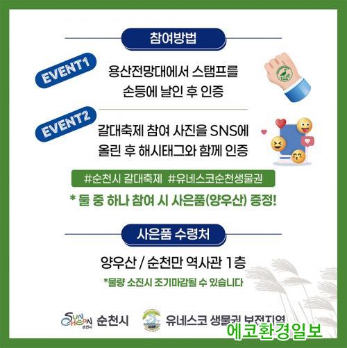 µÎ ¹øÂ°´Â ¼øÃµ¸¸°¥´ëÃàÁ¦ ÇöÀå¿¡¼ ÃÔ¿µÇÑ »çÁøÀ» #¼øÃµ¸¸°¥´ëÃàÁ¦, #À¯³×½ºÄÚ¼øÃµ»ý¹°±Ç µîÀÇ ÇØ½ÃÅÂ±×¿Í ÇÔ²² °³ÀÎ SNS¿¡ °Ô½Ã ÈÄ ¼øÃµ¸¸ ¿ª»ç°ü¿¡¼ ÀÎÁõÇÏ¸é µÈ´Ù.