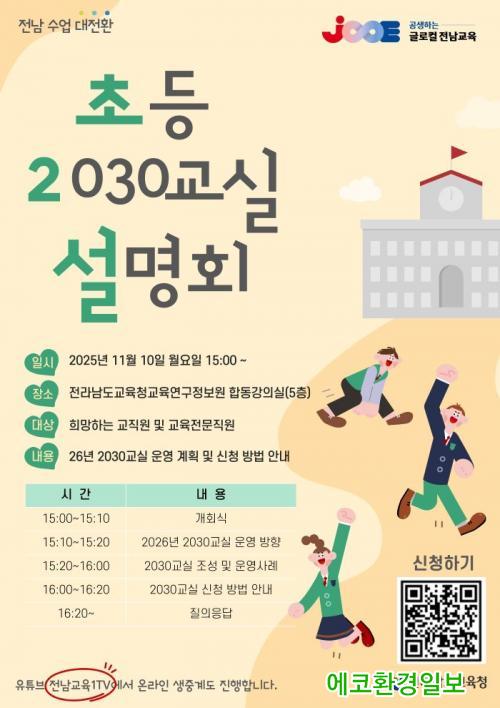 ÀÌ¿Í °ü·ÃÇØ Àü³²±³À°Ã»Àº ¿À´Â 10ÀÏ ¿ÀÈÄ 3½Ã Àü¶ó³²µµ±³À°Ã»±³À°¿¬±¸Á¤º¸¿ø¿¡¼ ¡®Ãʵî 2030±³½Ç ¼³¸íȸ¡¯¸¦ ¿¾î 2026Çг⵵ 2030±³½Ç ¿î¿µ °èȹ°ú ½Åû ¹æ¹ýÀ» ¾È³»ÇÑ´Ù. ¼³¸íȸ´Â ¿î¿µ ¹æÇ⠾ȳ»¿Í »ç·Ê ³ª´®, ½Åû ÀýÂ÷ ¹× ÁúÀÇÀÀ´ä ¼øÀ¸·Î ÁøÇàµÇ¸ç, °ü½É ÀÖ´Â ±³Á÷¿øÀº °ø¹® ¹× Æ÷½ºÅÍ QRÄڵ带 ÅëÇØ Âü¿©ÇÒ ¼ö ÀÖ´Ù. ´çÀÏ Çà»ç´Â À¯Æ©ºê ¡®Àü³²±³À°1TV¡¯¸¦ ÅëÇØ ½Ç½Ã°£ Áß°èµÈ´Ù.