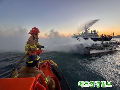»çÁø= ¿©¼ö ÇØ»ó¿¡¼­ ¼±¹Ú È­Àç·Î ¿©¼öÇØ°æÀÌ ´ëÀÀÁß