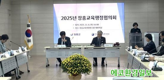 [¿¡ÄÚȯ°æÀϺ¸ Àü³²ÀåÈï=À̽ŵ¿±âÀÚ] Àü¶ó³²µµÀåÈï±³À°Áö¿øÃ»(±³À°Àå Á¤ÇàÁß)°ú ÀåÈﱺ(±º¼ö ±è¼º)Àº 11¿ù 6ÀÏ ÀåÈï±³À°Áö¿øÃ» ´ëȸÀǽǿ¡¼ ÀåÈﱺ°ú ÇÔ²² ¡®2025 ÀåÈï±³À°ÇàÁ¤ÇùÀÇȸ Á¤±âȸ¡¯¸¦ ¿°í ÀåÈï±³À° Çö¾È ÇØ°á°ú Çù·Â ¹æ¾ÈÀ» ³íÀÇÇß´Ù.