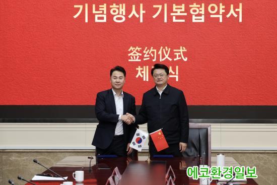 ¿À¾ð¼® µµºÀ±¸Ã»Àå(¿ÞÂÊ)°ú À¯È¿µ¿ âÆò±¸ÀåÀÌ ¡®ÀڸŰῬ 30Áֳ⠱â³ä»ç¾÷ Çù¾à¡¯À» ü°áÇÏ°í ¾Ç¼ö¸¦ Çϰí ÀÖ´Ù(2025. 11. 13. Áß±¹ º£ÀÌ¡½Ã âÆò±¸Ã»)