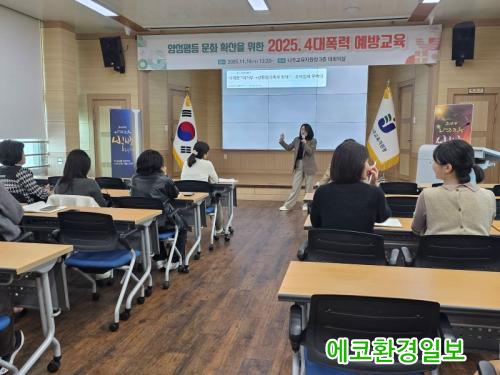 [¿¡ÄÚȯ°æÀϺ¸ Àü³²³ªÁÖ=À̽ŵ¿±âÀÚ] Àü¶ó³²µµ³ªÁÖ±³À°Áö¿øÃ»Àº 11¿ù 19ÀÏ ³ªÁÖ±³À°Áö¿øÃ» ÀüÁ÷¿øÀ» ´ë»óÀ¸·Î ¾ç¼ºÆòµî ¹®È­ È®»êÀ» À§ÇÑ ¿¹¹æ±³À°°ú Âü¿© ÇÁ·Î±×·¥À» ¿î¿µÇØ ±³À°°øµ¿Ã¼ÀÇ ¼ºÀÎÁö °¨¼ö¼ºÀ» ³ôÀÌ´Â µ¥ ³ª¼¹´Ù.