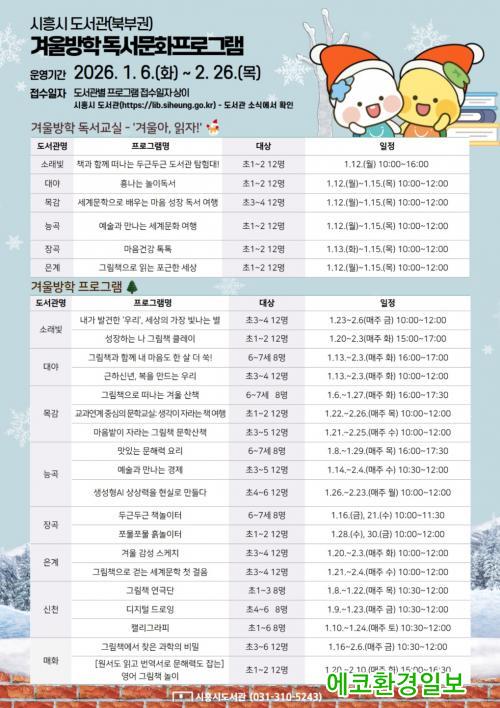 ¡®°Ü¿ï¹æÇÐ ÇÁ·Î±×·¥¡¯µµ Ã¥À» ±â¹ÝÀ¸·Î ÇÑ Ã¢ÀÇÀûÀÌ°í ´Ù¾çÇÑ È°µ¿À» Á¦°øÇÑ´Ù. ´ëÇ¥ ÇÁ·Î±×·¥À¸·Î´Â ¡ã¼Ò·¡ºûµµ¼°ü ¡®³»°¡ ¹ß°ßÇÑ ¡®¿ì¸®¡¯ ¼¼»óÀÇ °¡Àå ºû³ª´Â º°¡¯ ¡ã´É°îµµ¼°ü ¡®¸ÀÀÖ´Â ¹®ÇØ·Â ¿ä¸®¡¯ ¡ã¸ñ°¨µµ¼°ü ¡®±×¸²Ã¥À¸·Î ¶°³ª´Â °Ü¿ï »êÃ¥¡¯ µîÀÌ ÀÖÀ¸¸ç, ¾ÆÀ̵éÀÌ Àбâ Ȱµ¿°ú ÇÔ²² âÀÇ¡¤Á¤¼¡¤¹®È üÇèÀ» Æø³Ð°Ô °æÇèÇÒ ¼ö ÀÖµµ·Ï ±¸¼ºµÆ´Ù.