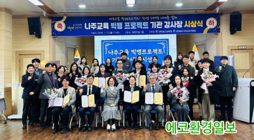 [¿¡ÄÚȯ°æÀϺ¸ Àü³²³ªÁÖ=À̽ŵ¿±âÀÚ] ³ªÁÖ±³À°Áö¿øÃ»Àº ¡¸³ªÁÖ±³À° ºò¹ð ÇÁ·ÎÁ§Æ®¡¹ ¼±Æ÷ ÀÌÈÄ Áö¿ª»çȸ¿Í ÇÔ²²ÇÏ´Â Áø·Î¡¤ÁøÇÐ Çù·Â ¸ðµ¨À» Áö¼ÓÀûÀ¸·Î È®´ëÇØ ³ª°¡°í ÀÖÀ¸¸ç, ±× ÀÏȯÀ¸·Î 2025³â ¿¬¸»°ú 2026³âÀ» ½ÃÀÛÇÏ´Â ½ÃÁ¡¿¡ ³ªÁÖ±³À° ºò¹ð ÇÁ·ÎÁ§Æ® Âü¿©±â°üÀ» ´ë»óÀ¸·Î Àü¶ó³²µµ±³À°°¨ ±â°ü °¨»çÀåÀ» ¼ö¿©ÇÏ¿´´Ù.
