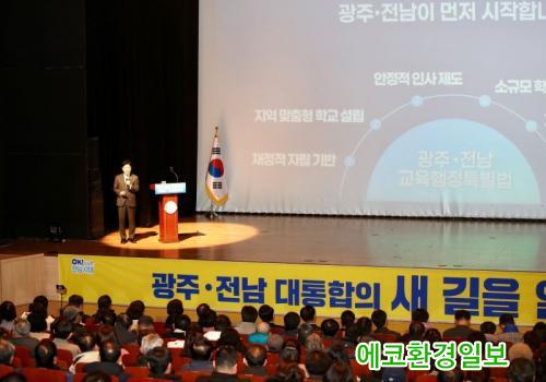 ±è´ëÁß ±³À°°¨Àº ¡°±¤ÁÖ±³À°Àº ÀüÅëÀûÀ¸·Î ¡®½Ç·Â±¤ÁÖ¡¯ÀÇ ¸í¼ºÀ» ÀÚ¶ûÇϰí ÀÖÀ¸¸ç, Àü³²±³À°Àº ³ó»ê¾îÃÌ ÀÛÀºÇб³ ±³À°°ú ±Û·ÎÄà ¹Ì·¡±³À°¿¡ °æÀï·ÂÀÌ ÀÖ´Ù¡±¸é¼ ¡°ÅëÇÕÀ» ÅëÇØ ÀÌ·± ÀåÁ¡À» ³ª´©°í ¹ÌÈíÇÑ Á¡Àº »óÈ£ º¸¿ÏÇÏ¿© ½Ã³ÊÁö¸¦ ³»¸é K-±³À°ÀÇ ¼±µÎÁÖÀÚ·Î ¿ì¶Ò ¼³ ¼ö ÀÖÀ» °Í.¡±ÀÌ°í ¿ª¼³Çß´Ù.