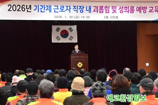 [¿¡ÄÚȯ°æÀϺ¸ °æ³²ÁøÁÖ=±è¸í¼ö±âÀÚ] ÁøÁֽô 30ÀÏ ½Ãû ½Ã¹ÎȦ¿¡¼­ ±â°£Á¦ ±Ù·ÎÀÚ 200¿© ¸íÀ» ´ë»óÀ¸·Î ¡®Á÷Àå ³» ±«·ÓÈû¡¤¼ºÈñ·Õ ¿¹¹æ ±³À°¡¯À» ½Ç½ÃÇß´Ù°í ¹àÇû´Ù.