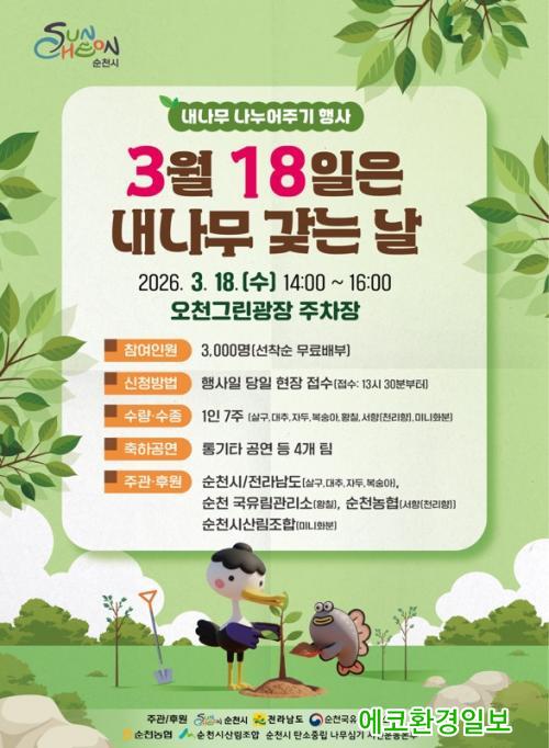 [¿¡ÄÚȯ°æÀϺ¸ ¼øÃµ=±è¿ëÈÆ ±âÀÚ] ¼øÃµ½Ã´Â ¿À´Â 3¿ù 18ÀÏ ¿ÀÈÄ 2½Ã ¿Àõ±×¸°±¤Àå ÁÖÂ÷Àå¿¡¼ ¡¸³»³ª¹« ³ª´©¾îÁÖ±â Çà»ç¡¹¸¦ °³ÃÖÇÑ´Ù°í ¹àÇû´Ù.