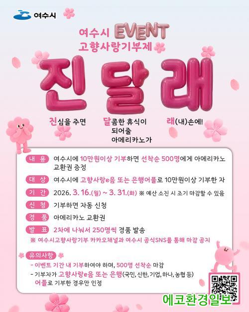 À̹ø Çà»ç´Â °íÇâ»ç¶ûeÀ½ ´©¸®Áý°ú ÀºÇà ¾Û(±¹¹Î,½ÅÇÑ,±â¾÷,Çϳª,³óÇù)À» ÅëÇØ °íÇâ»ç¶û±âºÎ±Ý 10¸¸ ¿ø ÀÌ»ó ±âºÎÀÚ¸¦ ´ë»óÀ¸·Î ¼±Âø¼ø 500¸í¿¡°Ô ¾Æ¸Þ¸®Ä«³ë ±³È¯±ÇÀ» Á¦°øÇÑ´Ù.