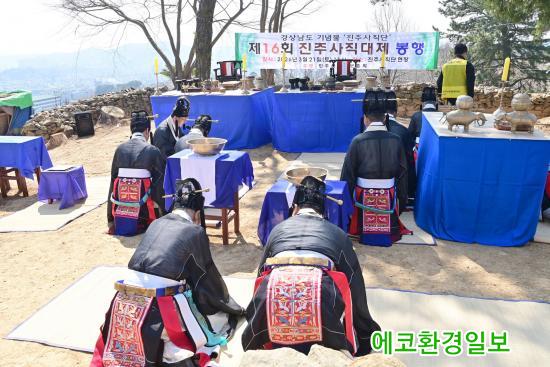 [¿¡ÄÚȯ°æÀϺ¸ °æ³²ÁøÁÖ=±è¸í¼ö±âÀÚ] ÁøÁÖ»çÁ÷´Ü º¸Á¸È¸´Â 21ÀÏ ¿ÀÀü 11½Ã »óºÀµ¿ ¼ÒÀç ÁøÁÖ »çÁ÷´Ü¿¡¼­ ½Ã¹ÎÀÇ ¾È³ç°ú Áö¿ªÀÇ ¹ø¿µÀ» ±â¿øÇÏ´Â Á¦16ȸ ÁøÁÖ »çÁ÷Á¦¸¦ ºÀÇàÇß´Ù.