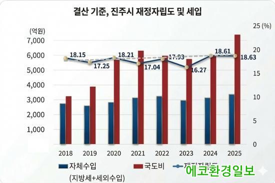 [¿¡ÄÚȯ°æÀϺ¸ °æ³²ÁøÁÖ=±è¸í¼ö±âÀÚ] ÁøÁÖ½ÃÀÇ ¿¬µµº° °á»ê ÀÚ·á¿¡ µû¸£¸é, 2018³â ÀÌÈÄ ÀçÁ¤ÀÚ¸³µµ´Â Å« º¯µ¿ ¾øÀÌ À¯ÁöÇϸ鼭 ±¹¡¤µµºñ È®º¸¾×Àº ´ëÆø Áõ°¡ÇÑ °ÍÀ¸·Î ³ªÅ¸³µ´Ù.
