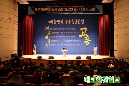À̹ø Çà»ç´Â °íÈïÀÌ ´ëÇѹα¹ ¿ìÁÖ»ê¾÷ÀÇ Á᫐ °ÅÁ¡À¸·Î ÇÑ ´Ü°è ´õ µµ¾àÇϱâ À§ÇÑ °ø°¨´ë¸¦ È®»êÇϰí, ¡®¿ìÁÖÇ×°øº¹ÇÕµµ½Ã Áö¿ø ¹× °Ç¼³¿¡ °üÇÑ Æ¯º°¹ý Á¦Á¤¡¯°ú ¡®¿ìÁÖÇ×°ø»ê¾÷ÁøÈï¿ø¡¯ À¯Ä¡ ´çÀ§¼ºÀ» ´ë³»¿Ü¿¡ ³Î¸® ¾Ë¸®±â À§ÇØ ¸¶·ÃµÆ´Ù.