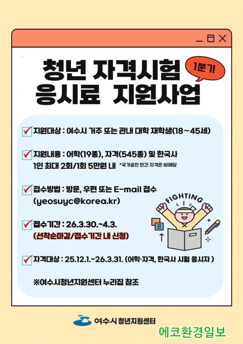 Áö¿ø ´ë»ó ½ÃÇèÀº 2026³â¿¡ ÀÀ½ÃÇÑ ¾îÇÐ 19Á¾(ÅäÀÍ µî)°ú ÀÚ°Ý 545Á¾(±¹°¡±â¼úÀڰݹý ½ÃÇà±ÔÄ¢¿¡ µû¸¥ ÀڰݽÃÇè), Çѱ¹»ç ½ÃÇèÀ̸ç, Áö³ÇØ 12¿ù¿¡ ÀÀ½ÃÇÑ ½ÃÇè(¾îÇС¤ÀÚ°Ý¡¤Çѱ¹»ç)¿¡ ´ëÇØ¼µµ ¼Ò±Þ Áö¿øÀÌ °¡´ÉÇÏ´Ù.