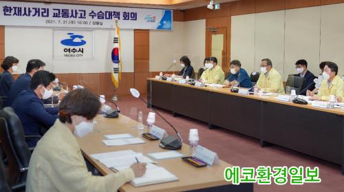 [¿¡ÄÚȯ°æÀϺ¸=±è±â³² ±âÀÚ] ¿©¼ö½Ã´Â 21ÀÏ ¿ÀÀü 10½Ã ¿©¼ö½Ãû 2Ãþ »óȲ½Ç¿¡¼­ ¼­±³µ¿ ÇÑÀç»ç°Å¸® ±³Åë»ç°í »óȲ´ëåȸÀǸ¦ ¿­°í ÇÇÇØÀÚ ¹× À¯°¡Á· µî¿¡ ´ëÇÑ Áö¿ø°ú »ç°íÀç¹ß¹æÁö ´ëÃ¥À» ³íÀÇÇß´Ù.