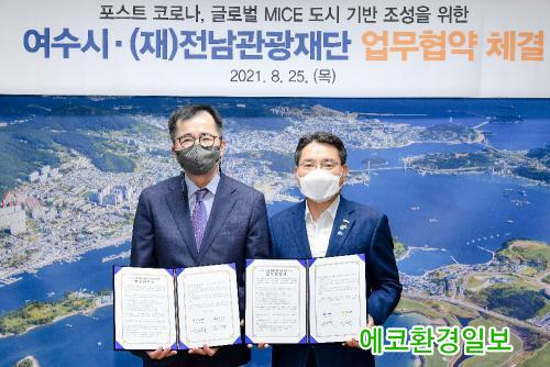 ¿©¼ö½Ã´Â 25ÀÏ ½ÃÀå½Ç¿¡¼ (Àç)Àü³²°ü±¤Àç´Ü°ú ±Û·Î¹ú MICE µµ½Ã ±â¹Ý Á¶¼ºÀ» À§ÇÑ ¾÷¹«Çù¾àÀ» ü°áÇß´Ù.