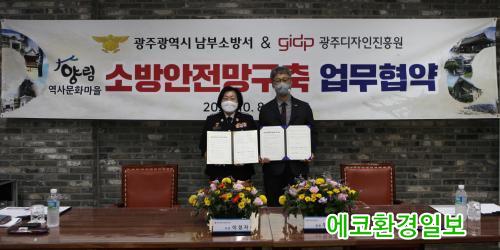 [¿¡ÄÚȯ°æÀϺ¸=±èÀçÂù±âÀÚ] ±¤ÁÖ ³²ºÎ¼Ò¹æ¼(¼Àå ÀÌÁ¤ÀÚ)´Â 8ÀÏ ±¤ÁÖµðÀÚÀÎÁøÈï¿ø°ú ¾ç¸²¿ª»ç¹®È¸¶À»ÀÇ ¼Ò¹æ¾ÈÀü¹®È È®»êÀ» À§ÇÑ ¾÷¹«Çù¾à(MOU)À» ü°áÇß´Ù.