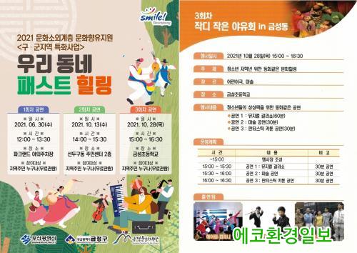 ÇÑÆí ±ÝÁ¤¹®È­Àç´ÜÀº Áö³­ 4¿ù ºÎ»ê½Ã ÁÖ°ü ¡®2021 ¹®È­¼Ò¿Ü°èÃþ ¹®È­ÇâÀ¯Áö¿ø ±¸¡¤±ºÁö¿ª Ưȭ»ç¾÷¡¯¿¡ ¼±Á¤µÅ ¡®¿ì¸®µ¿³× ÆÐ½ºÆ®Èú¸µ¡¯À» ÁøÇàÇß´Ù. ù ¹øÂ° °ø¿¬À¸·Î ±Ý»ç°ø´Ü ³ëµ¿ÀÚµéÀ» ã¾Æ ¡®ÀÚÅõ¸® ÈÞ½Ä ÀÎ(in) ±Ý»çȸµ¿µ¿¡¯À», µÎ ¹øÂ° °ø¿¬À¸·Î Áö³­ 13ÀÏ ¼±µÎ±¸µ¿ ¾î¸£½ÅµéÀ» ã¾Æ ¡®¾ó¾¾±¸! ÁÁ´Ù! ÀÎ(in) ¼±µÎ±¸µ¿¡¯À» ¿¬ ¹Ù ÀÖ´Ù.