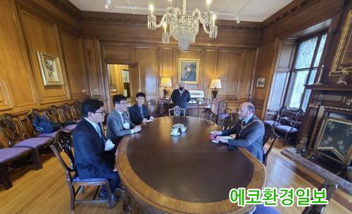 ¶ÇÇÑ Áö³ 1ÀÏ ¿ÀÈÄ(ÇöÁö½Ã°£) ¿µ±¹ ¿¡µç¹ö·¯ ½Ãû¿¡ ¹æ¹®Çß´Ù. À̳¯ ÇÁ·©Å© ·Î½º ½ÃÀå°ú ¸¸³ª 2050 ź¼ÒÁ߸³ ÀÇÁö¸¦ ´ãÀº ¿©¼ö½ÃÀå ¼Çѹ®À» Àü´ÞÇϸé¼, ź¼Ò¹èÃâ Àú°¨ Á¤Ã¥ µî ¾ç µµ½ÃÀÇ ±âÈĺ¯È ´ëÀÀ °ü·Ã Á¤Ã¥¿¡ ´ëÇØ ³íÀÇÇß´Ù.