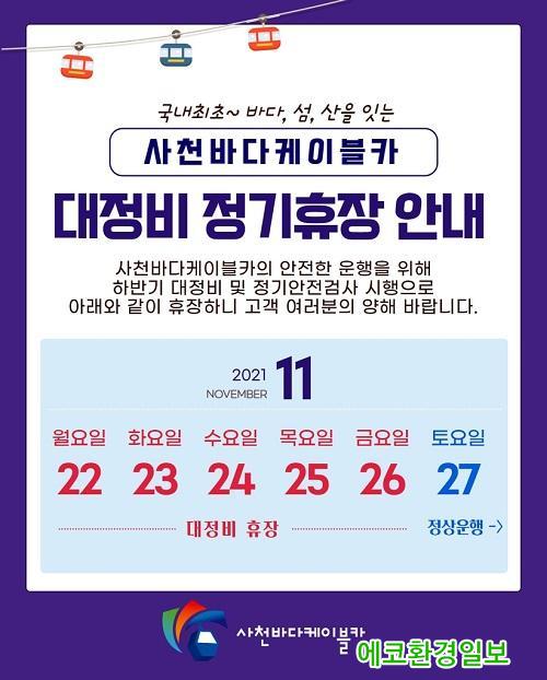 [¿¡ÄÚȯ°æÀϺ¸´º½º=¼­È¿°æ ±âÀÚ] »çõ½Ã½Ã¼³°ü¸®°ø´ÜÀº »çõ¹Ù´ÙÄÉÀ̺íÄ« ´ëÁ¤ºñ¿Í Á¤±â ¾ÈÀüÁ¡°ËÀ» À§ÇØ ¿À´Â 22ÀϺÎÅÍ 26ÀϱîÁö ÈÞÀåÇÕ´Ï´Ù.