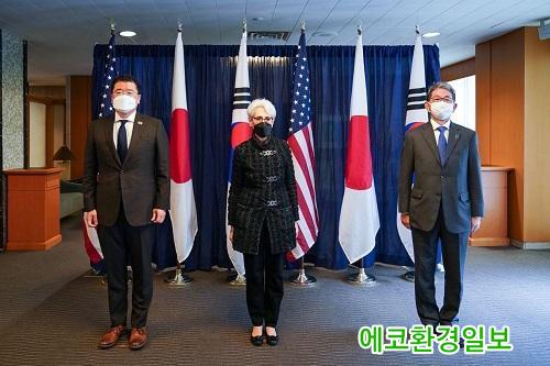 [¿¡ÄÚȯ°æÀϺ¸=Á¤ÁöÀ± ±âÀÚ] ¹Ì ±¹¹«ºÎ°¡ 18ÀÏ(ÇöÁö½Ã°£) ¹Ì±¹°ú ÀϺ» ¿Ü±³Â÷°ü ȸ´ãÀ» °®°í ÇѹÌÀÏ 3±¹ Çù·ÂÀÇ Á߿伺À» ÀçÈ®ÀÎÇß´Ù°í ¹àÇû´Ù.