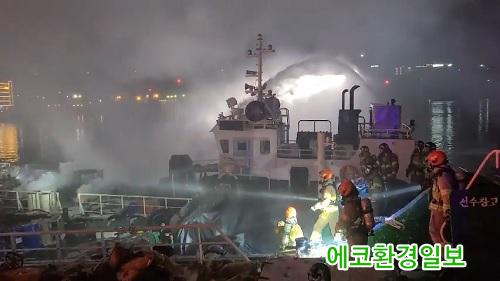 ÇØ°æÀº Àα٠°æºñÇÔÁ¤°ú ±¸Á¶´ë µîÀ» ±ÞÆÄÇØ ÇöÀå¿¡ Ã⵿ÇÑ ¿©¼ö¼Ò¹æ¼¿Í ÈÀçÁø¾Ð¿¡ ³ª¼¹´Âµ¥ ÇöÀåÀº ÈÀç ¼±¹Ú AÈ£ °©ÆÇ¿¡¼ ºÒ²É°ú ÇÔ²² ¿¬±â°¡ ³ª°í ÀÖ´ø »óȲÀ¸·Î ¼±¹Ú °©ÆÇ¿¡´Â Æó±â¹°(ÆóÇÃ¶ó½ºÆ½), ÈÆÁõÁ¦(ÀÎÈ ¹°Áú), ¿¬·áÀ¯ µîÀÌ ÀûÀçµÅ ÀÖ¾ú½À´Ï´Ù.