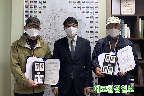 [¿¡ÄÚȯ°æÀϺ¸´º½º=Á¤ÁöÀ± ±âÀÚ] °æ±âµµ ¿Ü°û 860km¸¦ ¿¬°áÇÑ µµº¸±æ ¡®°æ±âµÑ·¹±æ¡¯ÀÇ ¿ÏÁÖÀÚ°¡ Àü¸é °³Åë ÈÄ Ã³À½À¸·Î ³ª¿Ô½À´Ï´Ù. À̼®¹ü °æ±âµµ ¹®ÈüÀ°°ü±¤±¹ÀåÀº ÃÖ±Ù µµÃ»¿¡¼ °æ±âµÑ·¹±æ ¿ÏÁÖÀÚ ¼±¿ìÁ¤ ¾¾(73‧¼ö¿ø), À̰üÇ¥ ¾¾(65‧ÃæºÏ Á¦Ãµ)¿¡°Ô Á÷Á¢ ¿ÏÁÖ ÀÎÁõ¼¿Í ±â³äǰÀ» Àü´ÞÇß½À´Ï´Ù.