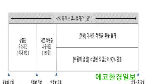 Çѱ¹¼ÒºñÀÚ¿ø ¼ÒºñÀÚºÐÀïÁ¶Á¤À§¿øÈ¸(À§¿øÀå º¯¿õÀç, ÀÌÇÏ ¡®À§¿øÈ¸¡¯)´Â À¯È¿±â°£ÀÌ °æ°úÇÑ ½ÅÀ¯Çü»óǰ±Ç(ÀÌÇÏ ¡®»óǰ±Ç¡¯)°ú °ü·ÃÇÏ¿© ¡®»óǰ±Ç ±¸¸Å±Ý¾×À» Àû¸³±ÝÀ¸·Î Áö±ÞÇÏ´Â »ç¾÷ÀÚÀÇ È¯ºÒÁ¤Ã¥¿¡ µû¶ó Àû¸³µÈ ±Ý¾×(ÀÌÇÏ ¡¯Àû¸³±Ý¡®)À» »ç¿ë±âÇÑ ³» »ç¿ëÇÏÁö ¸øÇØ ¼Ò¸êµÈ °æ¿ì¿¡µµ »ó»çä±Ç ¼Ò¸ê½ÃÈ¿±â°£(5³â)ÀÌ °æ°úÇÏÁö ¾Ê¾Ò´Ù¸é ÇØ´ç Àû¸³±ÝÀÇ 90%¸¦ ȯ±ÞÇØ¾ß ÇÑ´Ù.¡¯°í °áÁ¤Çß´Ù.