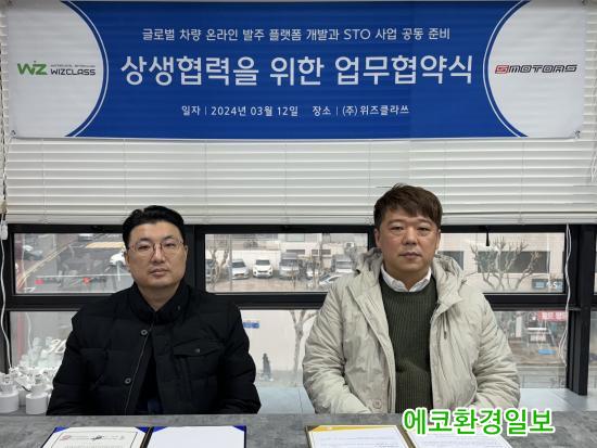 ¿Ï¼ºÂ÷ Á¦Á¶ ±â¼ú·ÂÀ» °¡Áø ±¹ÅäºÎÀÎÁõ ÀÚµ¿Â÷ Á¦Á¶ ±â¾÷ (ÁÖ)¿¡½º¸ðÅͽº(SMOTORS)¿Í À¥, ¾Û, ºí·°Ã¼ÀÎ, IOT µî ´Ù¾çÇÑ ¼ÒÇÁÆ®¿þ¾î °³¹ß´É·Â°ú ±â¼ú·ÂÀ» °¡Áø ÁÖ½Äȸ»ç À§ÁîŬ¶ó¾²(WIZCLASS)°¡ ¿ª»ïµ¿ À§ÁîŬ¶ó¾² º»»ç¿¡¼ ¾÷¹«Çù¾à(MOU)À» ü°áÇß´Ù.
