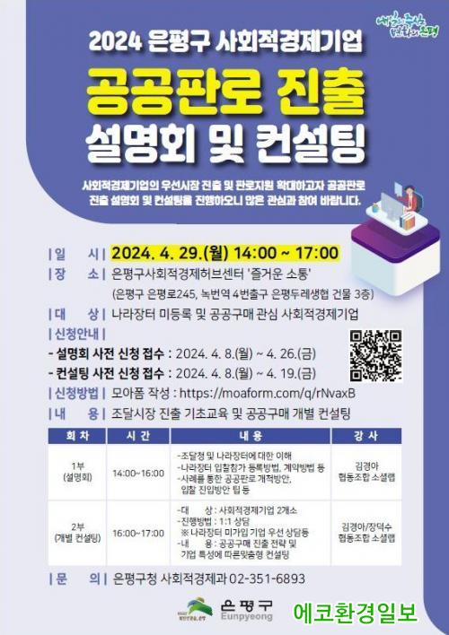 »çÀü ½ÅûÀº ¿À´Â 26ÀϱîÁö È«º¸ À¥Æ÷½ºÅÍÀÇ Å¥¾Ë(QR)Äڵ带 ÅëÇØ ¸ð¾ÆÆû ½Åû¼¸¦ ÀÛ¼º ÈÄ ¿Â¶óÀÎÀ¸·Î Á¦ÃâÇϰųª ÀºÆò±¸ »çȸÀû°æÁ¦°ú·Î ÀüÈ ½ÅûÇÏ¸é µÈ´Ù. ´Ü, ÄÁ¼³ÆÃ »çÀü ½ÅûÀº ´ë»ó ±â¾÷ 2°÷ ¼±Á¤°ú °»ç ¹èÁ¤ µî »çÀü Áغñ·Î ÀÎÇØ 19ÀϱîÁö·Î Á¶±â ¸¶°¨µÈ´Ù.
