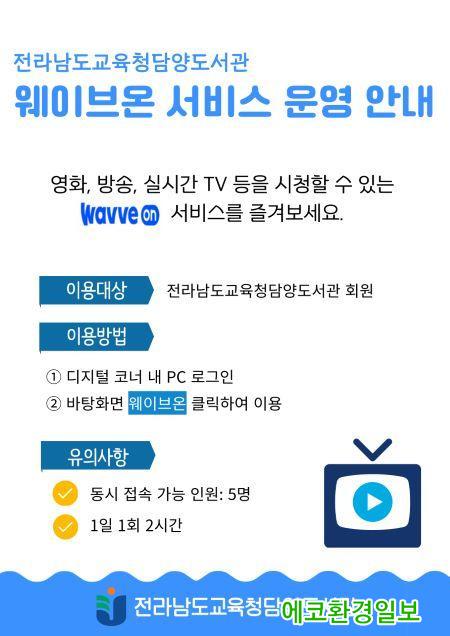 [¿¡ÄÚȯ°æÀϺ¸ ´ã¾ç±º=À̽ŵ¿±âÀÚ] Àü¶ó³²µµ±³À°Ã»´ã¾çµµ¼­°üÀº ÀÌ¿ëÀÚ¿¡°Ô ¿µÈ­, µå¶ó¸¶, ¹æ¼Û µî ´Ù¾çÇÑ µðÁöÅÐ ÄÜÅÙÃ÷¸¦ Á¦°øÇϱâ À§ÇØ ¿À´Â 11¿ùºÎÅÍ ¡¸¿þÀ̺ê¿Â OTT ¼­ºñ½º¡¹¸¦ ¿î¿µÇÑ´Ù.