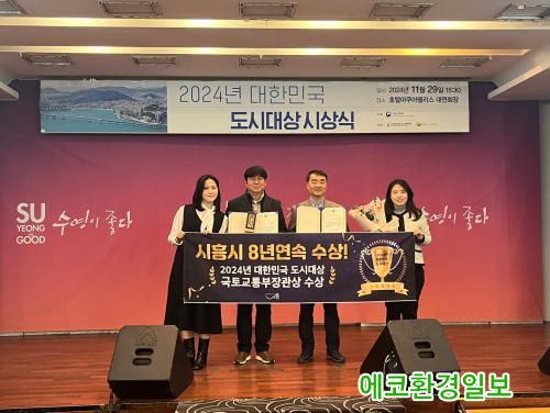 [¿¡ÄÚȯ°æÀϺ¸ ½ÃÈï½Ã=À̽ŵ¿±âÀÚ] ½ÃÈï½Ã°¡ Áö³ 11¿ù 29ÀÏ ºÎ»ê È£ÅÚ¾ÆÄí¾ÆÆç¸®½º¿¡¼ ¿¸° ¡®2024³â ´ëÇѹα¹ µµ½Ã´ë»ó¡¯¿¡¼ ±¹Åä±³ÅëºÎÀå°ü»óÀ» ¹Þ¾Ò´Ù. ÀÌ·Î½á ½Ã´Â ÁöÀÚü ÃÖÃÊ·Î 8³â ¿¬¼Ó ¼ö»óÀ̶ó´Â ¿µ¿¹¸¦ ¾È¾Ò´Ù.