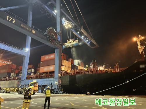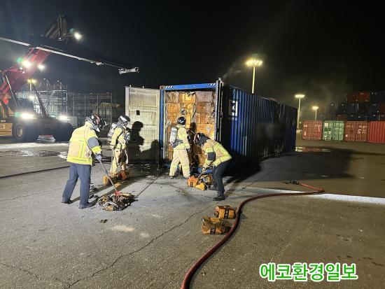 ½¡ÀÌ ÀûÀçµÈ ÄÁÅ×À̳ʿ¡ 1°³¿¡¼ ÀÚ¿¬¹ßÈ·Î ¿¬±â°¡ ÇǾî¿Ã¶úÀ¸³ª Å« ÈÀç°¡ ¹ß»ýÇÏÁø ¾Ê¾ÒÀ¸¸ç, ¿©¼öÇØ°æÀº °Å¹®µµ ÀÎ±Ù ÇØ»ó¿¡¼ºÎÅÍ °æºñÇÔÁ¤À» µ¿¿øÇØ ±¤¾çÇ× ÄÁÅ×À̳ʺεαîÁö ¾ÈÀü°ü¸®¸¦ ½Ç½ÃÇß´Ù.