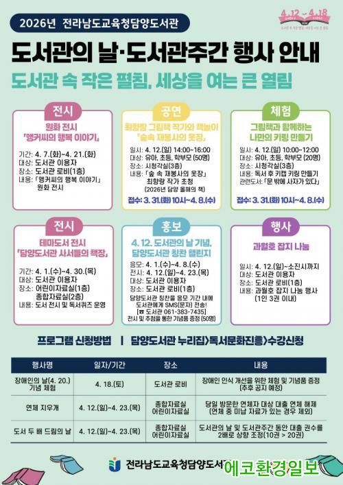 À̹ø Çà»ç´Â ¡®µµ¼°ü ¼Ó ÀÛÀº Æîħ, ¼¼»óÀ» ¿©´Â Å« ¿¸²¡¯À» ÁÖÁ¦·Î Àü½Ã, °ø¿¬, üÇè, È«º¸, Âü¿©Çü Çà»ç µî ´Ùä·Î¿î ÇÁ·Î±×·¥À¸·Î ±¸¼ºµÇ¾î Áö¿ª Áֹε鿡°Ô Ã¥°ú µµ¼°üÀÇ °¡Ä¡¸¦ ³Î¸® ¾Ë¸± ¿¹Á¤ÀÌ´Ù.