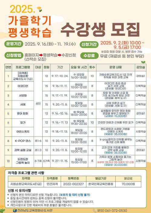 Àü¶ó³²µµ±³À°Ã»È­¼øµµ¼­°ü, 2025³â °¡À»ÇÐ±â Æò»ýÇнÀ ÇÁ·Î±×·¥ ¿î¿µ