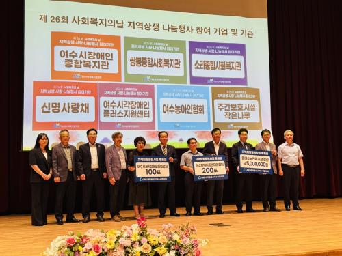 [¿¡ÄÚȯ°æÀϺ¸ ¿©¼ö=±è±â³² ±âÀÚ] µ¿¿©¼ö³ëÀκ¹Áö°üºÐ°ü(°üÀå ÀÌÈñ½Â)Àº MG»õ¸¶À»±Ý°í ¿©¼ö½ÃÇùÀÇȸ(ȸÀå °ø°æÅÃ)·ÎºÎÅÍ 500¸¸ ¿øÀÇ ÈÄ¿ø±ÝÀ» Àü´Þ¹Þ¾Ò´Ù°í ¹àÇû´Ù. MG»õ¸¶À»±Ý°í ¿©¼ö½ÃÇùÀÇȸ´Â 2021³âºÎÅÍ º¹Áö°ü¿¡ ÃÑ 2,000¸¸ ¿ø »ó´çÀÇ ÈÄ¿ø±ÝÀ» Áö¿øÇØ¿ÔÀ¸¸ç¡¦