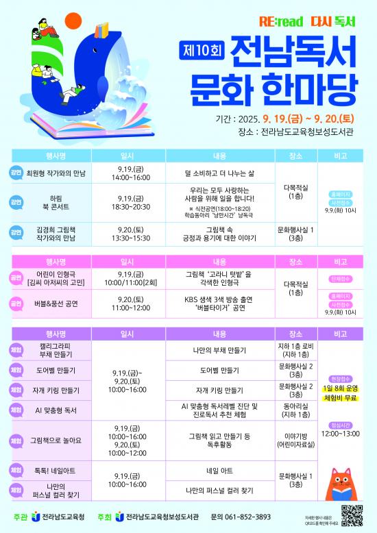 [¿¡ÄÚȯ°æÀϺ¸ Àü³²º¸¼º=À̽ŵ¿±âÀÚ] Àü¶ó³²µµ±³À°Ã»º¸¼ºµµ¼­°üÀº ¿À´Â 19ÀÏ(±Ý)ºÎÅÍ 20ÀÏ(Åä)±îÁö ÀÌÆ²°£, ¡¸Á¦10ȸ Àü³²µ¶¼­¹®È­ÇѸ¶´ç¡¹À» °³ÃÖÇÑ´Ù. ¡®RE:read ´Ù½Ã µ¶¼­¡¯¸¦ ÁÖÁ¦·Î ¿­¸®´Â À̹ø Çà»ç´Â µ¶¼­¸¦ ¸Å°³·Î ÇÑ ´Ùä·Î¿î ÇÁ·Î±×·¥À» ÅëÇØ Áö¿ª¹Î°ú Çлýµé¡¦