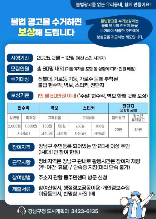 [¿¡ÄÚȯ°æÀϺ¸ °­³²±¸=À̽ŵ¿±âÀÚ] ²ÞÀÌ ¸ðÀÌ´Â µµ½Ã, ¹Ì·¡¸¦ ±×¸®´Â °­³²±¸°¡ ºÒ¹ý À¯µ¿±¤°í¹° ±ÙÀýÀ» À§ÇØ ¿î¿µ ÁßÀÎ ¡®¼ö°Åº¸»óÁ¦¡¯ÀÇ Âü¿© ÀοøÀ» ´ëÆø È®´ëÇÑ´Ù. ±¸´Â ÁֹΠ¾à 60¸íÀ» »õ·Ó°Ô ¸ðÁýÇØ ´õ ¸¹Àº ÁÖ¹ÎÀÌ Á÷Á¢ °Å¸® Á¤ºñ¿¡ ³ª¼³ ¼ö ÀÖµµ·Ï Çß´Ù. ¼ö°Å¡¦