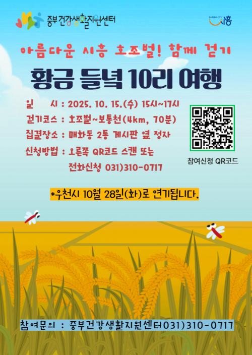 [¿¡ÄÚȯ°æÀϺ¸ ½ÃÈï½Ã=À̽ŵ¿±âÀÚ] ½ÃÈï½Ã´Â ¿À´Â 10¿ù 15ÀÏ ¿ÀÈÄ 3½ÃºÎÅÍ 5½Ã±îÁö È£Á¶¹ú ÀÏ´ë¿¡¼­ ¡®È²±Ý µé³è 10¸® ¿©Çà °È±â Çà»ç¡¯¸¦ ¿¬´Ù. Âü°¡ÀÚµéÀº ¸ÅÈ­µ¿ 2Åë °Ô½ÃÆÇ ¿· Á¤ÀÚ¸¦ Ãâ¹ßÇØ È£Á¶¹ú¿¡¼­ º¸Åëõ±îÁö ¿Õº¹ ¾à 4§° ±¸°£(¼Ò¿ä ½Ã°£ ¾à 70ºÐ)À» °ÉÀ¸¸ç¡¦