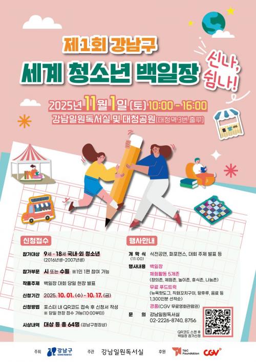 [¿¡ÄÚȯ°æÀϺ¸ °­³²±¸=À̽ŵ¿±âÀÚ] ²ÞÀÌ ¸ðÀÌ´Â µµ½Ã, ¹Ì·¡¸¦ ±×¸®´Â °­³²±¸°¡ ¿À´Â 11¿ù 1ÀÏ ¿ÀÀü 10½ÃºÎÅÍ ¿ÀÈÄ 4½Ã±îÁö °­³²ÀÏ¿øµ¶¼­½Ç°ú ´ëû°ø¿ø ÀÏ´ë¿¡¼­ ¡®Á¦1ȸ °­³²±¸ ¼¼°èû¼Ò³â¹éÀÏÀå ½Å³ª, ½°³ª!¡¯¸¦ °³ÃÖÇÑ´Ù. ÀÌ Çà»ç´Â ±¹³»‧¿Ü ±¹Àû û¼Ò³âÀÌ ÇÔ²²¡¦