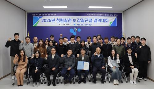 [¿¡ÄÚȯ°æÀϺ¸ ¿©¼ö=±è±â³² ±âÀÚ] ¿©¼ö½Ãµµ½Ã°ü¸®°ø´Ü(ÀÌ»çÀå ¼Ûº´±¸)Àº 11¿ù 3ÀÏ º»»ç ȸÀǽǿ¡¼­ ¡®Ã»·Å½Çõ ¹× °©Áú±ÙÀý °áÀÇ´ëȸ¡¯¸¦ °³ÃÖÇß´Ù°í ¹àÇû´Ù. À̹ø °áÀÇ´ëȸ´Â °øÁ÷»çȸÀÇ Ã»·ÅÀǽÄÀ» °­È­Çϰí, °ÇÀüÇÑ Á¶Á÷¹®È­¸¦ È®¸³Çϱâ À§ÇØ ¸¶·ÃµÆ´Ù. À̳¯ Çà»ç¡¦