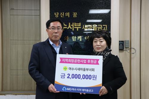 [¿¡ÄÚȯ°æÀϺ¸ ¿©¼ö=±è±â³² ±âÀÚ] ¿©¼ö¼­ºÎ»õ¸¶À»±Ý°í(ÀÌ»çÀå Á¤±æ¿ë)´Â Áö¿ª»çȸ¿ÍÀÇ »ó»ýÀ» ½ÇõÇϱâ À§ÇÑ Áö¿ªÈñ¸Á°øÇå»ç¾÷ÀÇ ÀÏȯÀ¸·Î »õ¸¶À»ÁöµµÀÚ¿©¼ö½ÃÇùÀÇȸ(ȸÀå À̱âÀü)¿Í ¿©¼ö½Ã»õ¸¶À»ºÎ³àȸ(ȸÀå ±è¿µÈñ)¿¡ ÃÑ 400¸¸ ¿øÀÇ ±âºÎ±ÝÀ» Àü´ÞÇß´Ù. À̹ø ±âºÎ¡¦