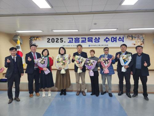 [¿¡ÄÚȯ°æÀϺ¸ Àü³²°íÈï=À̽ŵ¿±âÀÚ] °íÈï±³À°Áö¿øÃ»Àº 12¿ù 23ÀÏ(È­) ´ëȸÀǽǿ¡¼­ °íÈï±³À° ¹ßÀü¿¡ ±â¿©ÇÑ ±³Á÷¿ø°ú Çкθð, ±º¹ÎÀ» ´ë»óÀ¸·Î ¡®Á¦1ȸ °íÈï±³À°»ó¡¯ ¼ö¿©½ÄÀ» ½Ç½ÃÇÏ¿´´Ù. À̹ø Çà»ç´Â ±×µ¿¾È °íÈï Áö¿ªÀÇ ±³À° ¹ßÀüÀ» À§ÇØ Çå½ÅÇØ ¿Â ±³Á÷¿ø°ú ¡¦