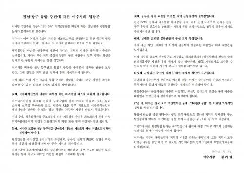 [¿¡ÄÚȯ°æÀϺ¸ ¿©¼ö=±è±â³² ±âÀÚ] ÃÖ±Ù Àü³²¡¤±¤ÁÖ ÇàÁ¤ÅëÇÕ ³íÀǰ¡ º»°ÝÈ­µÇ°í ÀÖ´Â °¡¿îµ¥, ¿©¼ö½Ã(½ÃÀå Á¤±â¸í)°¡ °ü·ÃÇØ ÅëÇÕÀÇ µ¿µîÇÑ ÁÖü·Î¼­ °øµ¿ ¼ºÀå ±â¹ÝÀ» ´ãº¸ÇÒ ¡®5´ë ÇÙ½É °úÁ¦¡¯¸¦ Á¤ºÎ¿¡ °ø½Ä Á¦¾ÈÇß´Ù. Á¤ ½ÃÀåÀº 15ÀÏ ÀÔÀå¹®À» ÅëÇØ ¡°¼öµµ±Ç °ú¡¦