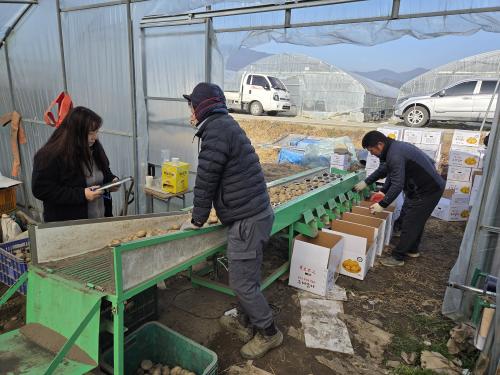 [¿¡ÄÚȯ°æÀϺ¸ ±¸·Ê=À±¼ºÁÖ ±âÀÚ] ±¸·Ê±º ³ó¾÷±â¼ú¼¾ÅÍ´Â 1¿ù 16ÀÏ ¿ë¹æ¸é °¨ÀÚÀÛ¸ñ¹Ý(ȸÀå ÃÖÀÎÈ£)ÀÌ Àç¹èÇÑ ÅëÀϰ¨ÀÚ ¼öÈ® ÇöÀå¿¡¼­ ±â¼úÁöµµ¸¦ Çß´Ù°í ¹àÇû´Ù. ÅëÀϰ¨ÀÚ´Â ±âÈÄ ÀûÀÀ¼ºÀÌ ¶Ù¾î³ª°í ¼ö·®¼ºÀÌ ³ô¾Æ ¾ÈÁ¤ÀûÀÎ ³ó°¡¼Òµæ È®º¸¿¡ ÀûÇÕÇÑ Ç°Á¾ÀÌ´Ù. ±ºÀº¡¦