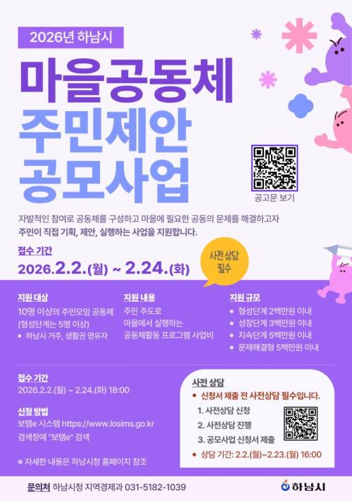 [¿¡ÄÚȯ°æÀϺ¸ Çϳ²½Ã=À̽ŵ¿±âÀÚ] Çϳ²½Ã´Â ¿À´Â 2¿ù 24ÀϱîÁö ¡®2026³â Çϳ²½Ã ¸¶À»°øµ¿Ã¼ ÁÖ¹ÎÁ¦¾È °ø¸ð»ç¾÷¡¯¿¡ Âü¿©ÇÒ ÁֹθðÀÓ °øµ¿Ã¼¸¦ ¸ðÁýÇÑ´Ù. À̹ø °ø¸ð»ç¾÷Àº °°Àº Áö¿ª¿¡ °ÅÁÖÇÏ´Â ÁֹεéÀÌ ÀÚ¹ßÀûÀ¸·Î ¸ð¿© ¸¶À»¿¡ ÇÊ¿äÇÑ È°µ¿À» Á÷Á¢ ¹ß±¼ÇÏ°í ±âȹ¡¤¡¦