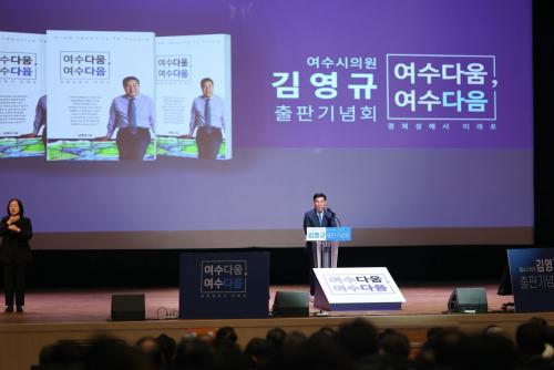 [¿¡ÄÚȯ°æÀϺ¸ Àü³²¿©¼ö=±è±â³² ±âÀÚ] ±è¿µ±Ô ´õºÒ¾î¹ÎÁÖ´ç ¿©¼ö½ÃÀÇȸ ÀÇ¿øÀÇ ÃâÆÇ±â³äȸ°¡ 7ÀÏ ¼ºÈ²¸®¿¡ ¸¶¹«¸®µÆ´Ù. À̳¯ ¿ÀÈÄ ¿©¼ö½Ã¹Îȸ°ü Çà»çÀåÀ» ãÀº ½Ã¹Î 4õ5¹é¿© ¸íÀº ¡º¿©¼ö´Ù¿ò․¿©¼ö´ÙÀ½¡»Ã¥À» Ãâ°£ÇÑ ±è ÀÇ¿øÀ» ÇÔ²² ÃàÇÏÇß´Ù. <@1> Áö¡¦